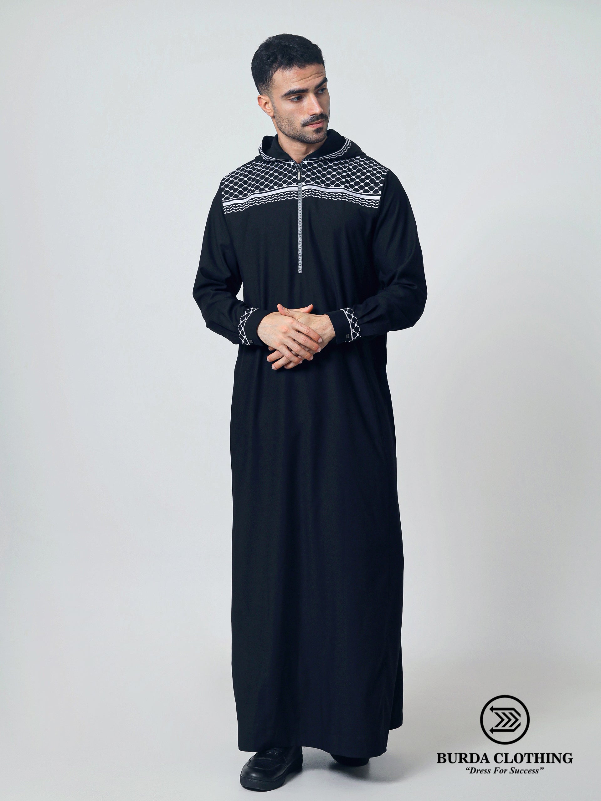 Combining Traditional Palestinian-Keffiyeh patterns along the chest and hoodie, along with patterning on the cuff; one of our most requested designs.