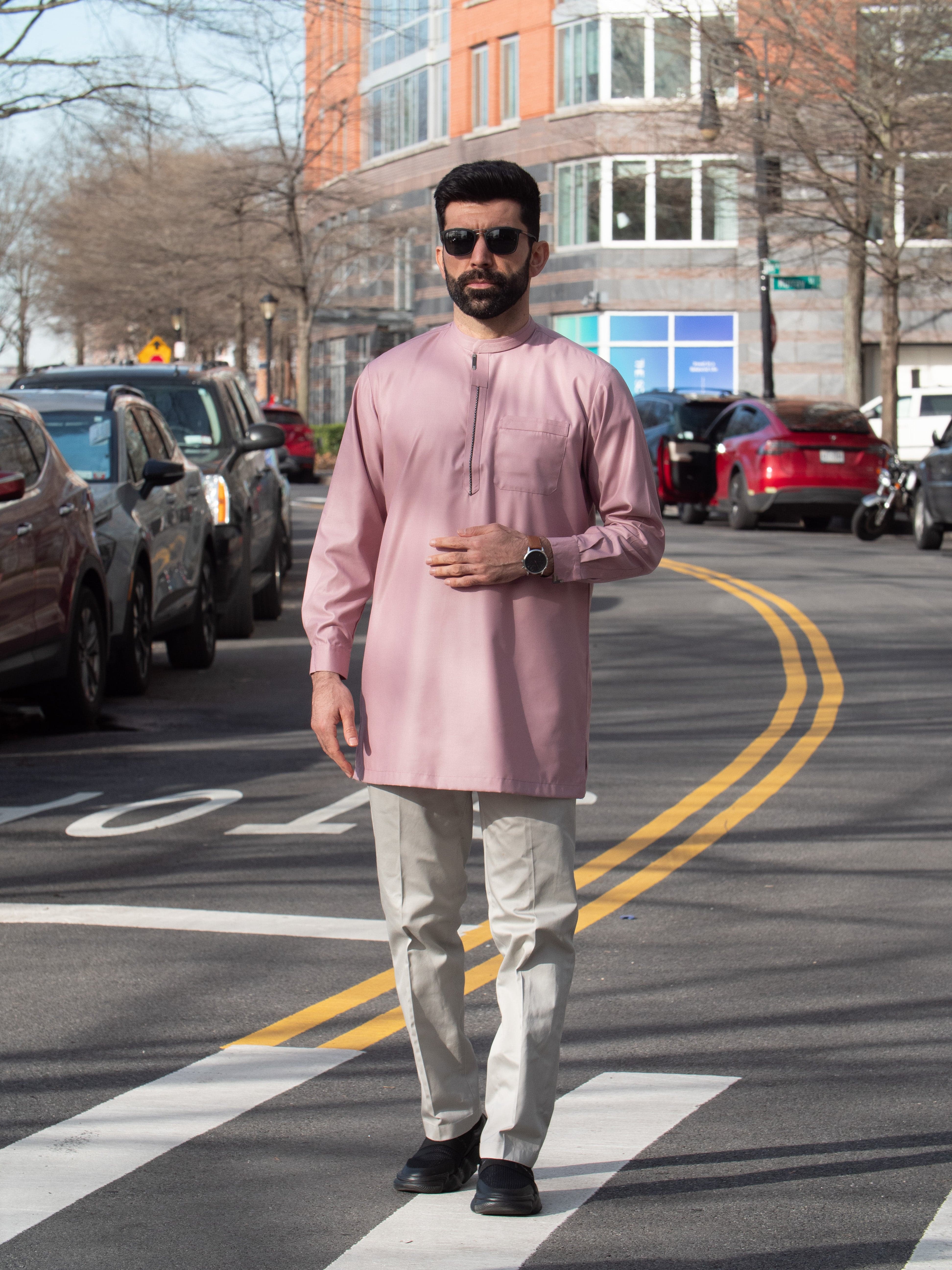 Diese mittelschwere Cordkurta besticht durch ihr schlichtes und elegantes Design. In einem auffälligen Rosa,