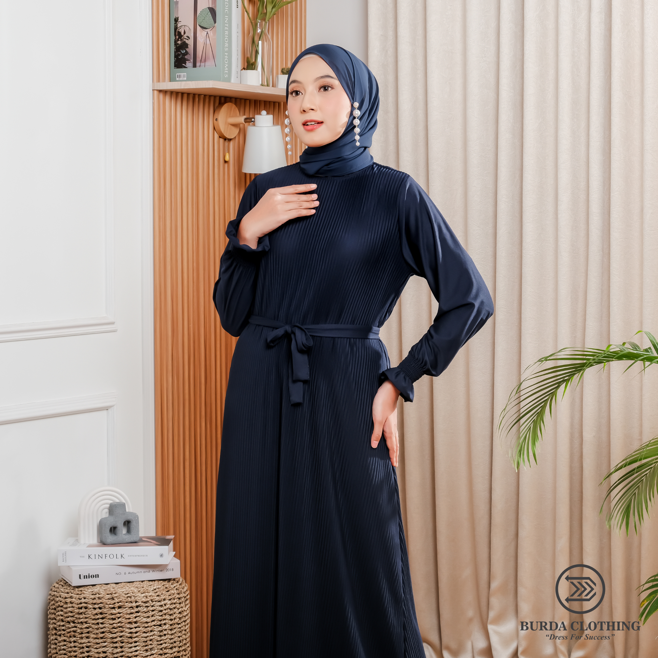 Der Marineblauton verleiht einen Hauch von Eleganz und macht das Kleid vielseitig einsetzbar – sowohl für legere Anlässe als auch für formelle Anlässe. Dieses lässig-elegante Kleid schmeichelt jeder Figur und bietet gleichzeitig die gewünschte Leichtigkeit im Alltag.